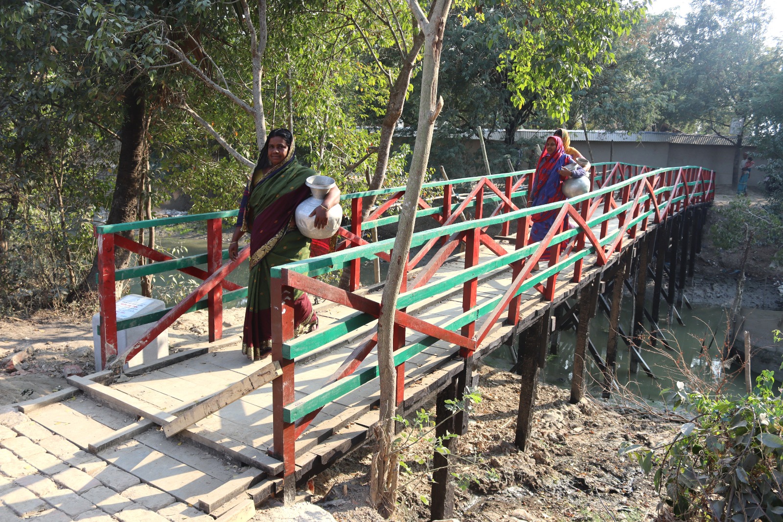 Before the construction of the wooden bridge, daily communication in Jotindronagar and Choto Vetkhali of Munshiganj Union, Shyamnagar Upazila was extremely risky. Narrow, unsafe crossings made movement difficult and dangerous especially for women, children, youth, and school-going students. During monsoon and high tides, accessing schools, markets, and essential services became a serious challenge.After the intervention, the newly constructed wooden bridge has transformed local mobility. What was once a daily risk is now a safe, reliable pathway, restoring dignity, confidence, and ease of movement for the community.